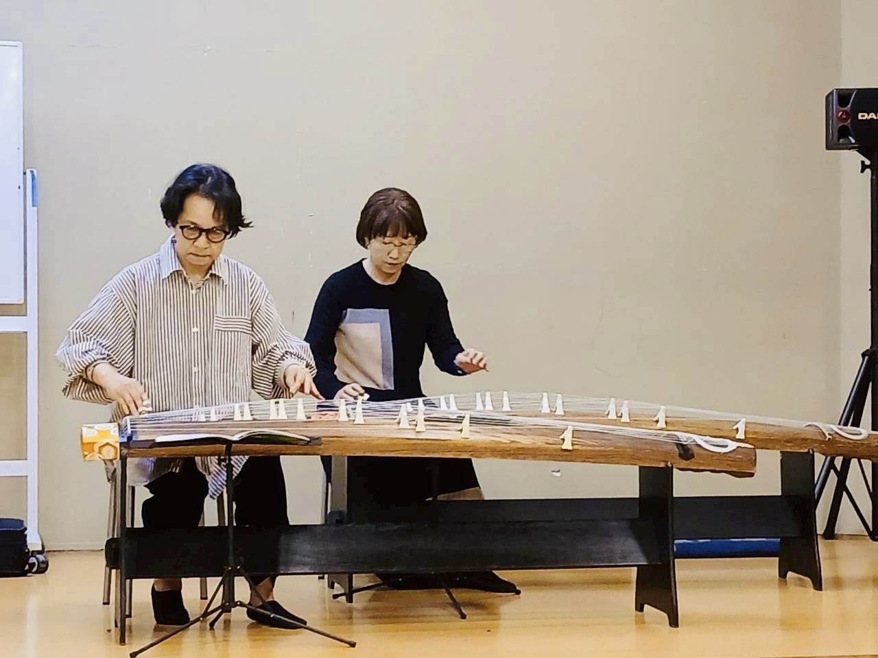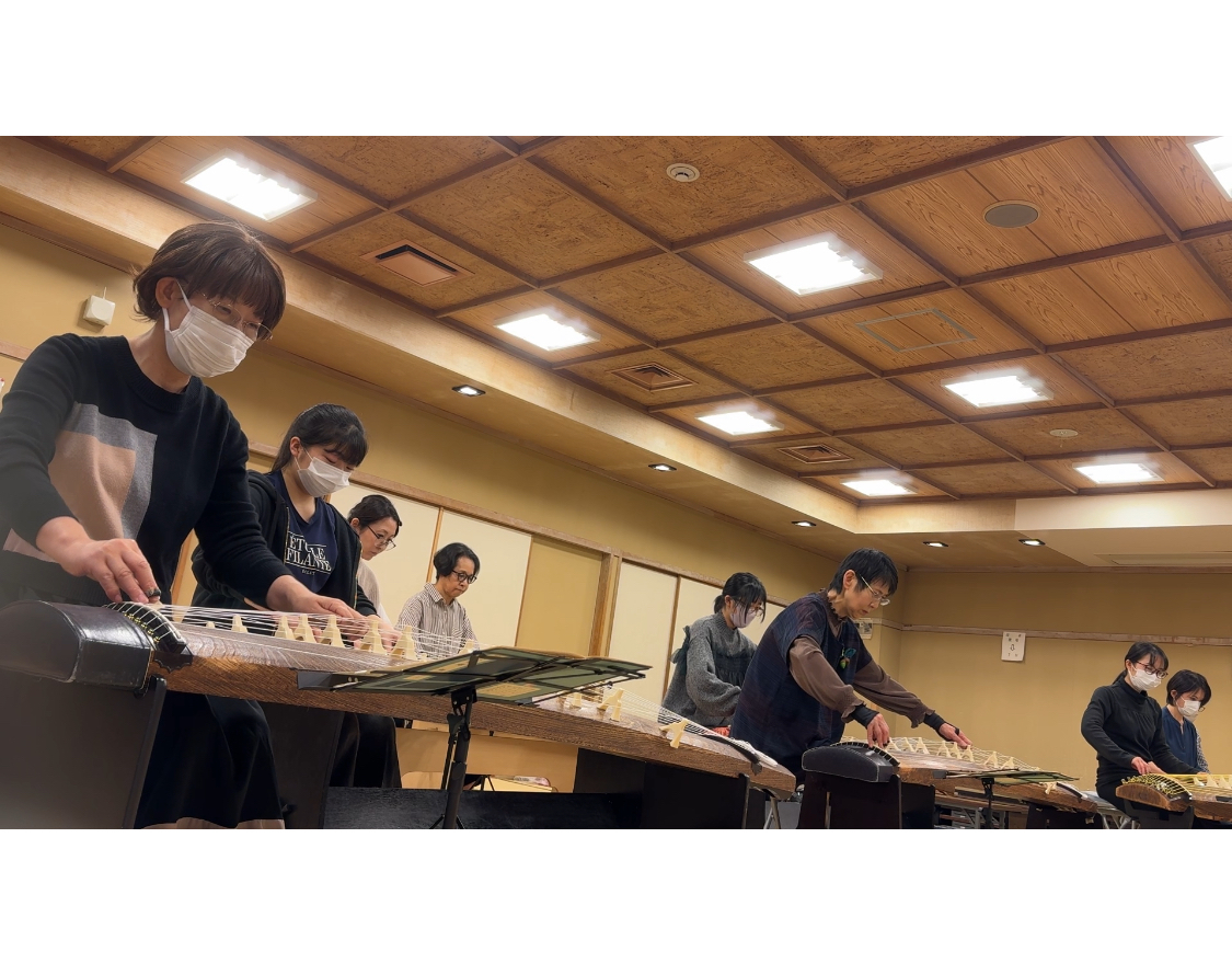 私たちの所属してる沢井箏曲院の両師の曲から3曲、古曲、そしてメンバーの井関一博の新作初演「二面の箏と三弦のための風の舞」初演をいたします。